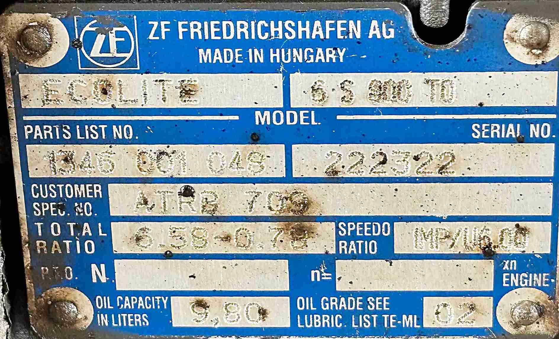 DAF LF CF Gearbox Euro 6 ZF 6S 800 TO Manual 1346 001 048 ATRB 709
