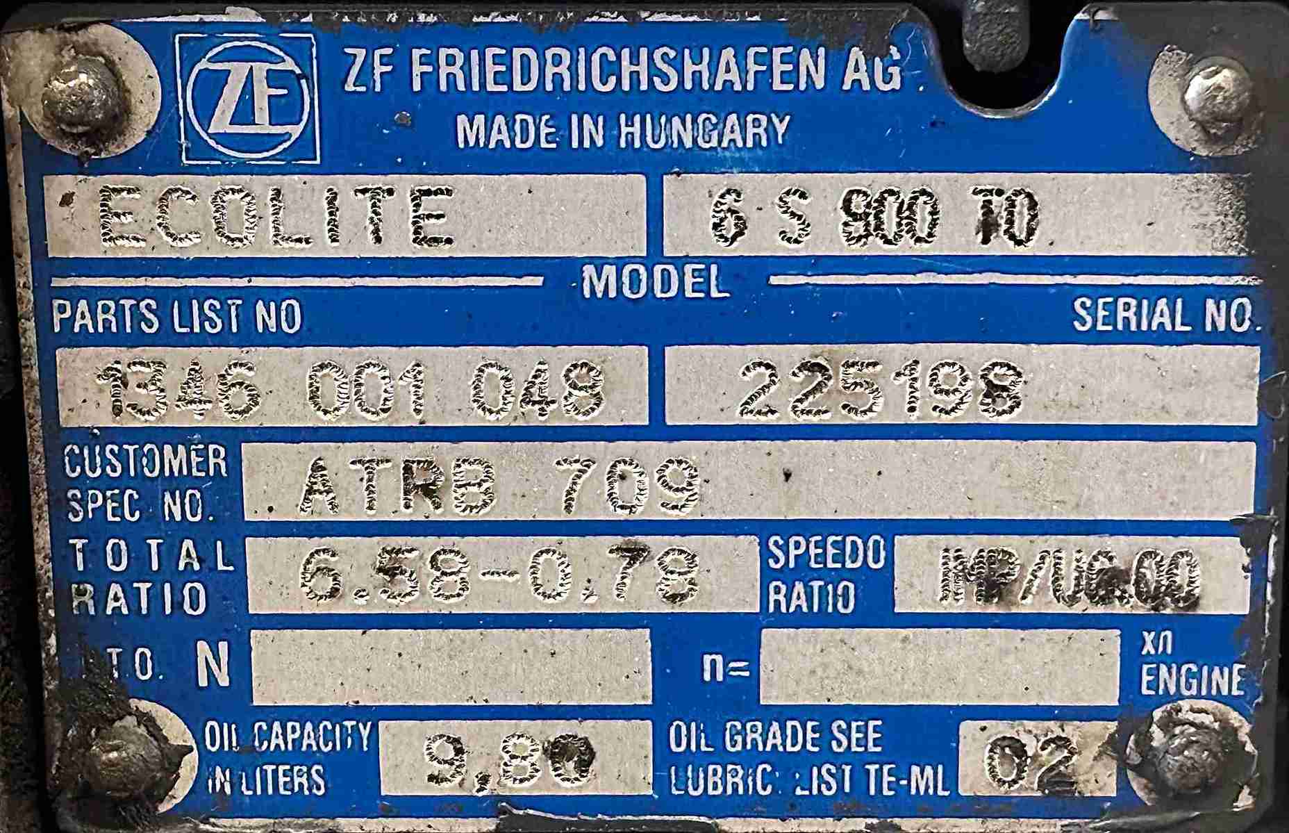 DAF LF CF Gearbox Euro 6 ZF 6S 800 TO Manual 1346 001 048 ATRB 709