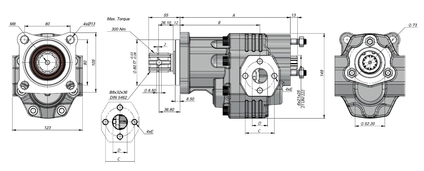 Tandem Gear Oil Pump 82L-51L Bi-Directional